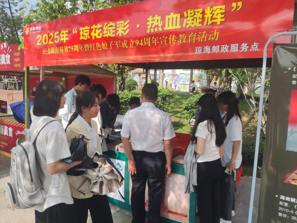 5月1日,“琼花绽彩 热血凝辉”——纪念海南解放75周年暨红色娘子军成立94周年宣传教育活动在红色娘子军纪念园举行。琼海市分公司在活动现场精心设点服务,以邮为媒,为这场红色文化盛宴增添了一抹独特的邮政色彩。
