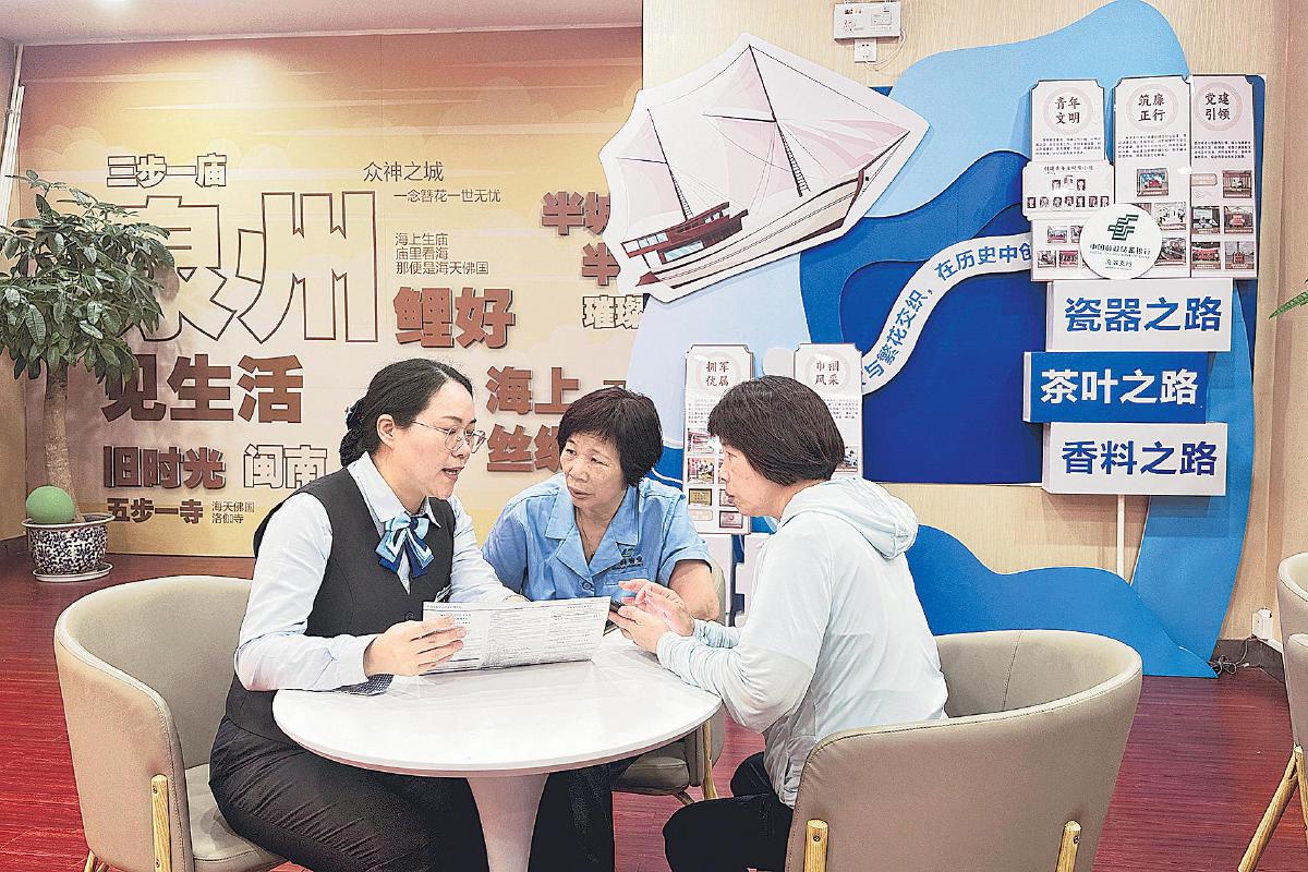 在拥有百年历史的骑楼建筑中,海滨支行将泉州古城的特色元素巧妙地融入其中:古色古香的泉州木偶、精美的石雕工艺品,还有“福狮”手办等泉州文创产品,让客户感受到古城的历史文化底蕴和时尚新活力。同时,该支行以打造古城特色支行为目标,以做好活力商圈特色项目为切入点,累计为周边商圈企业和商户授信近2.7亿元;与泉州市商务局联合举办“福建有口福”餐饮消费季,打造“美食+金融+文旅”服务模式,今年累计发放消费贷款1.71亿元,带动信用卡消费增长超1.5亿元,为古城注入了消费新动能。“政府和银行同时给补贴,实实在在地带动了店里的客流量和经营流水。”“传奇姜母鸭”的店员林礼燕说。