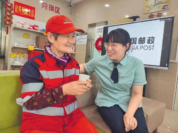 7月12日中午,忙了大半天的环卫工人孟阿姨像往常一样来到山东省淄博市邮政分公司张店共青团西路支局营业厅纳凉休息。支局经理忙迎上前去热情打招呼,并送上一杯温水,孟阿姨一个劲地点赞道:“邮政的服务真棒!”这是发生在“劳动者驿站”的暖心一幕。据悉,在淄博邮政,像这样依托营业网点建成的“劳动者驿站”共有89处,提供的服务已惠及4.1万余人次。
