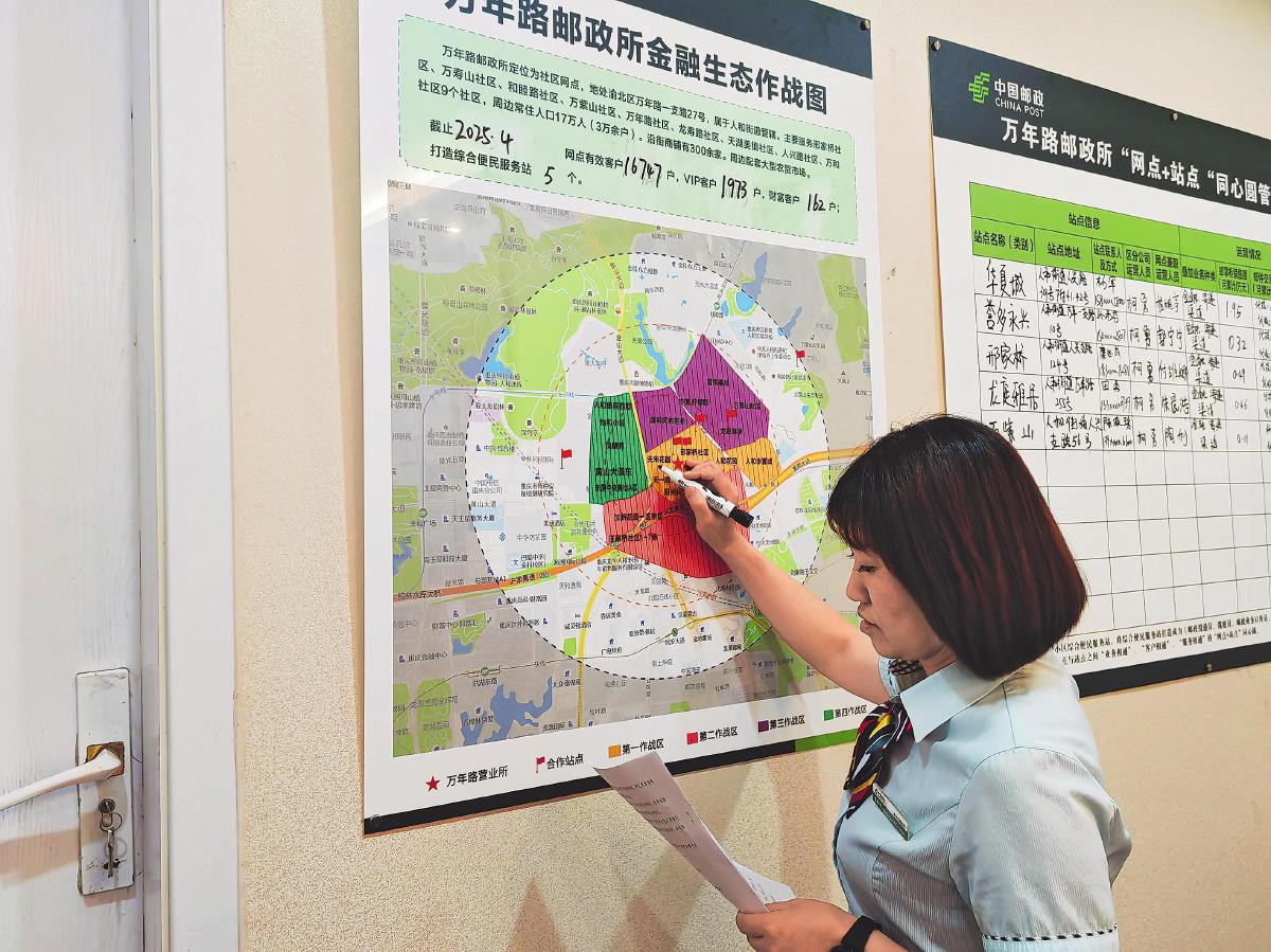 一系列从上至下、协同联动的管理举措,让“网点+站点”的“同心圆”管理效能更上一层楼。以万年路邮政所为例,通过发挥支局副经理、渠道经理、银行经理“铁三角”作用,为13个站点安装了“邮掌柜”系统,汰换滞销商品,叠加社区团购、分销大单品等业务。数据显示,今年1—7月,12个站点点均叠加业务4.38项,累计发生业务18.26万笔。