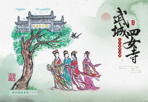 此次首发的文创产品涵盖邮资封、明信片、邮资机宣传戳及主题宣传戳四大类,每一件都浸润着四女寺的文化基因。其中,“四女”邮资封(右上图)以工笔重彩呈现经典场景:画面中四位女子于槐树下漫步,旁侧牌坊古朴,飞鸟点缀天际,还原“四女侍亲,栽槐立誓”的民间传说,四女常伴树侧,行孝事、话桑麻,树与人相衬成景,演绎着传统孝道的温度,让古老美德在时光里熠熠生辉,供后人感怀、传扬;而“四女寺水利枢纽”明信片(右下图)则通过航拍视角与细节特写的结合,展现这座黄河下游重要水利工程的宏伟气势——堤坝蜿蜒如巨龙伏波,闸门启闭间尽显古人治水的智慧结晶,让现代观者得以触摸历史的温度。
