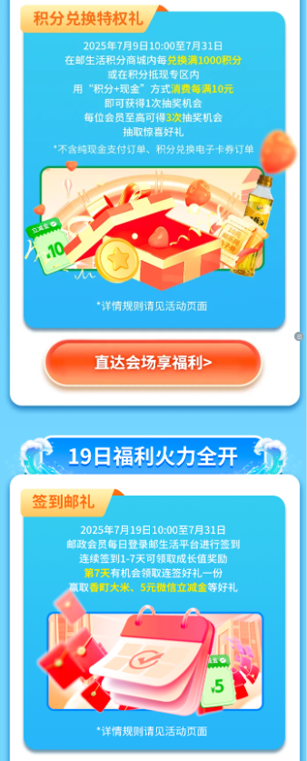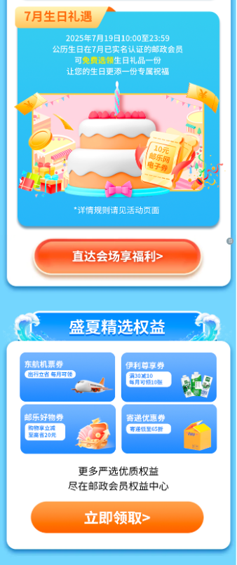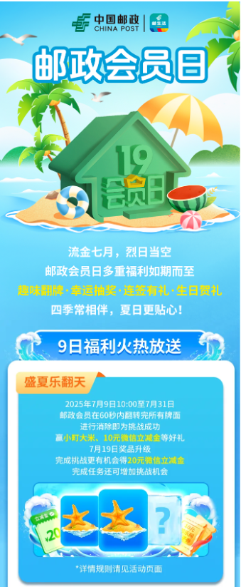 7月邮政会员日翻牌赢20元立减金!连续签到有惊喜!