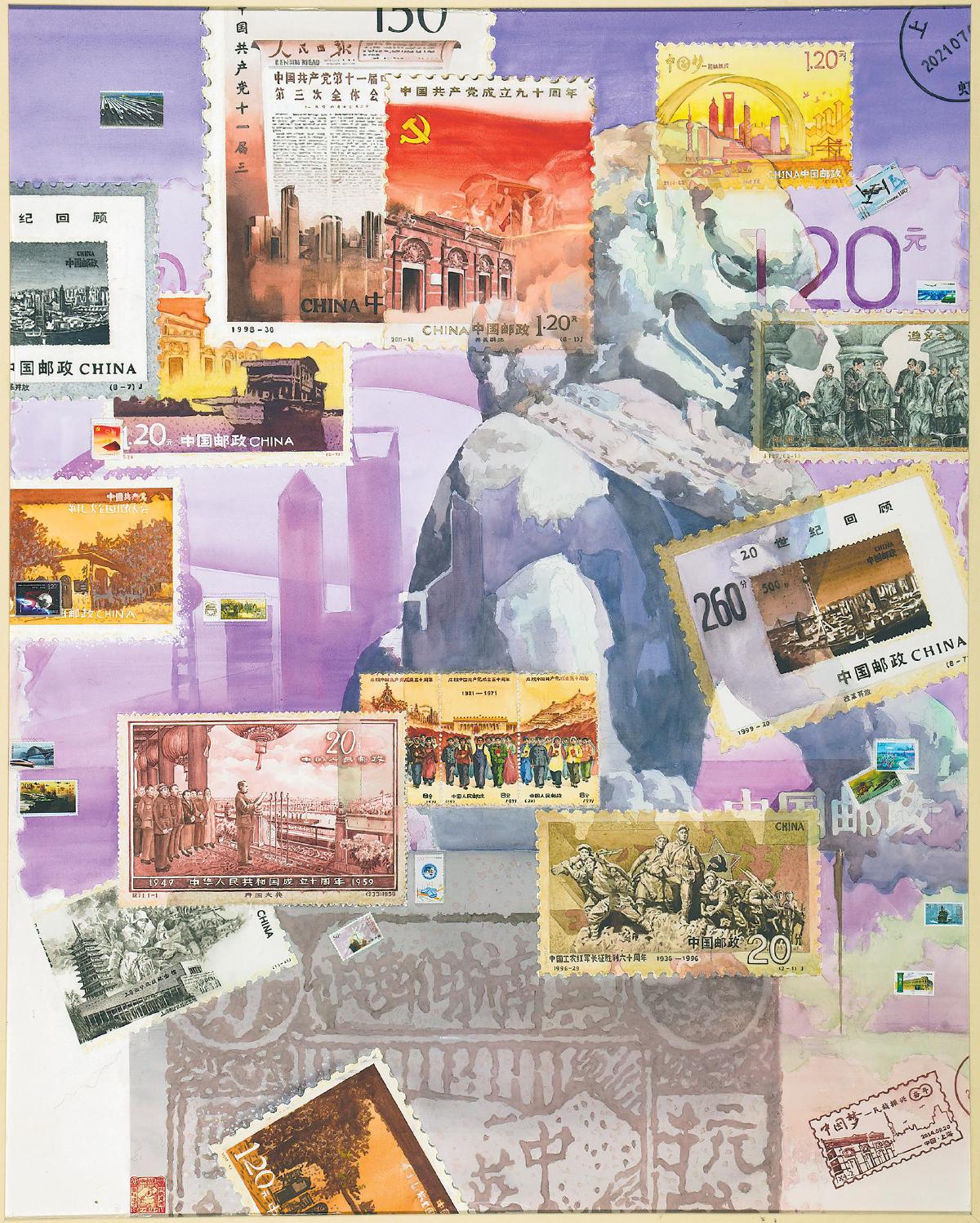 为了更好地完成画作,田燕萍还请教了她的绘画老师——浙江省美术家协会会员、水彩画界策展人马百齐。“方寸对画卷,颇有历史和艺术的价值。”马百齐肯定了田燕萍的创作思路,并在邮票选取、表现手法、绘画技巧上对其进行了专业的指导。
