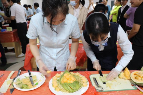 哈密瓜切盘创作环节堪称活动的“高光时刻”。30分钟的创作时间里,操作区里刀光流转,各队创意频出。顶瓜瓜队精心雕琢出“一路生花,扬帆起航”的作品,巧妙地将邮政元素与哈密瓜的香甜交融;邮递传香队打造的“传香万里”作品,借瓜块勾勒邮路,蕴意让乐东甜香传向世界;一刀定甜队则以整齐的摆盘和清晰的邮政标识吸引了众人的目光,展现出简洁而大气的风格。主持人实时暖场,一句“看这雕刻手法多细致”,瞬间将大家的注意力聚焦到作品细节,线下观众踮脚围观拍照,线上点赞量更是突破2万。