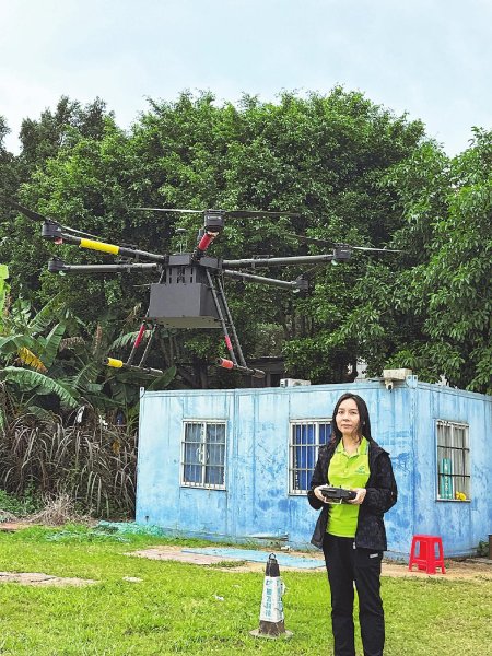胡雨鋆操作无人机起飞。
