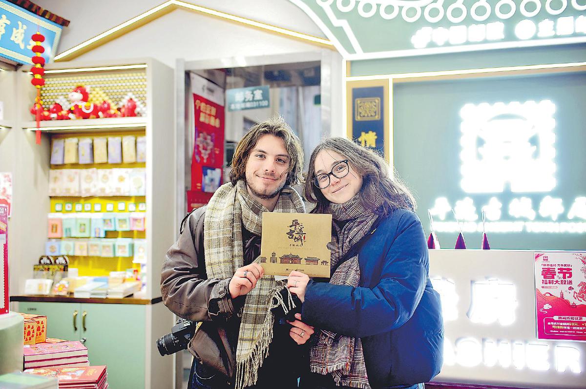 “进入腊月以来,每天来我们这逛的外国游客都在增加,买明信片是他们的首选。我们的营业时间也是跟着游客走的,有时候一直要到快凌晨1点。”平遥古城主题邮局负责人杜子荣告诉记者,“我们主题邮局是一个窗口。在这里,外国游客不仅能体验中国年俗,更能通过邮政这一传统载体,触摸到中国文化的肌理,理解春节背后‘团圆’‘和谐’‘祈福’的共通价值。”