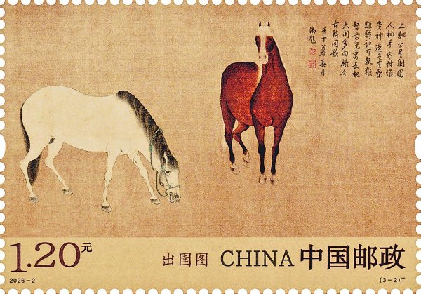 本报讯 3月3日,《出圉图》特种邮票1套3枚发行。邮票图案名称均为:出圉图(局部)。
