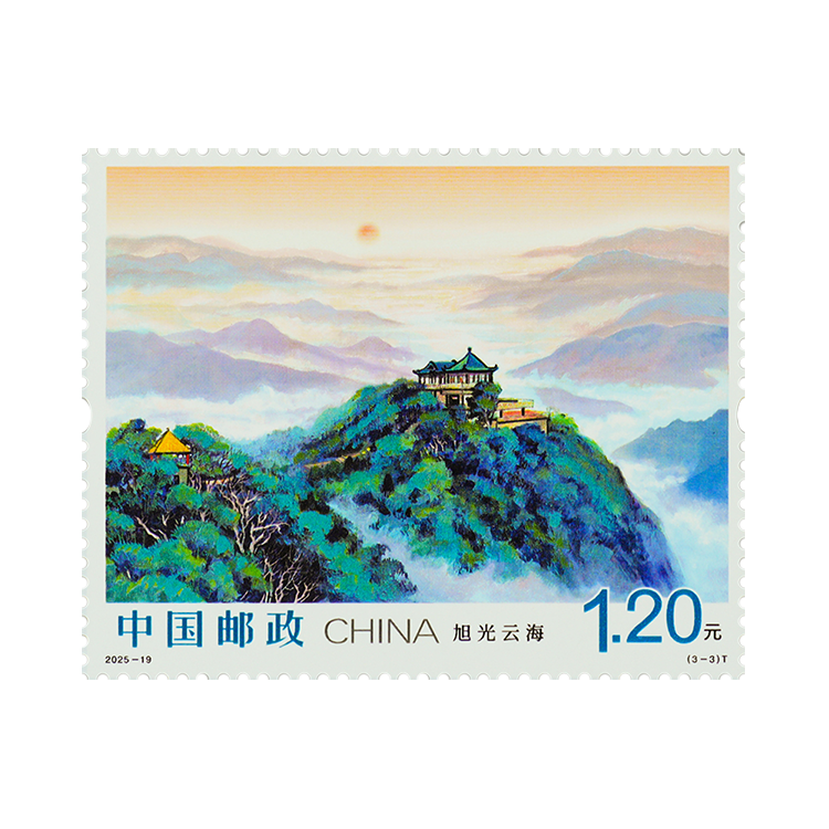 第三枚“旭光云海”,描绘了莫干山的日出景象。该枚邮票定格了莫干山旭日东升的壮丽景象,旭光台作为莫干山观赏日出的绝佳观景台,将天地交辉的盛景尽收眼底。远山如黛,云涛似海,万道金芒为连绵山峦披上锦袍,昭示着此刻的莫干山正以更辉煌的姿态拥抱崭新的未来。
