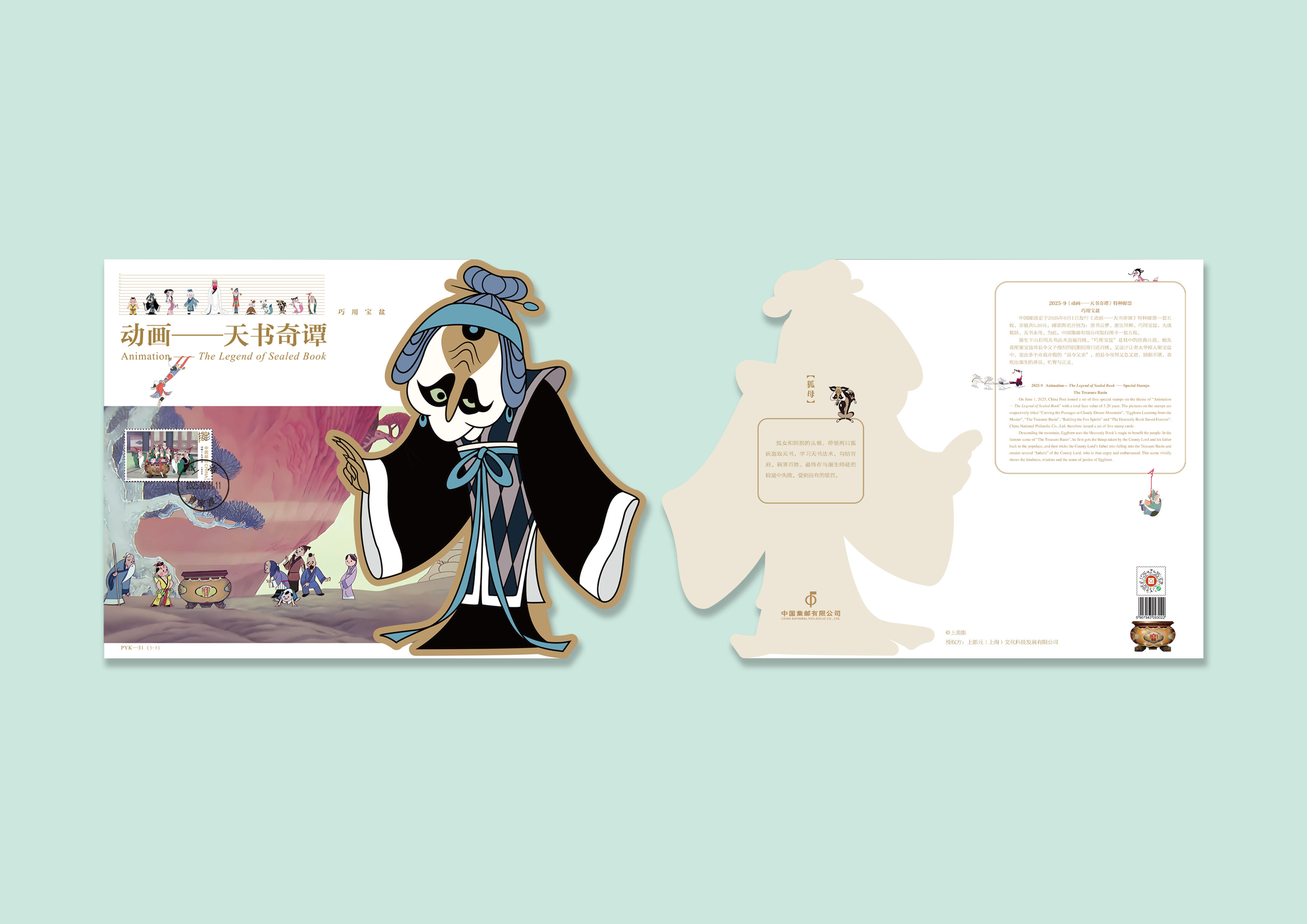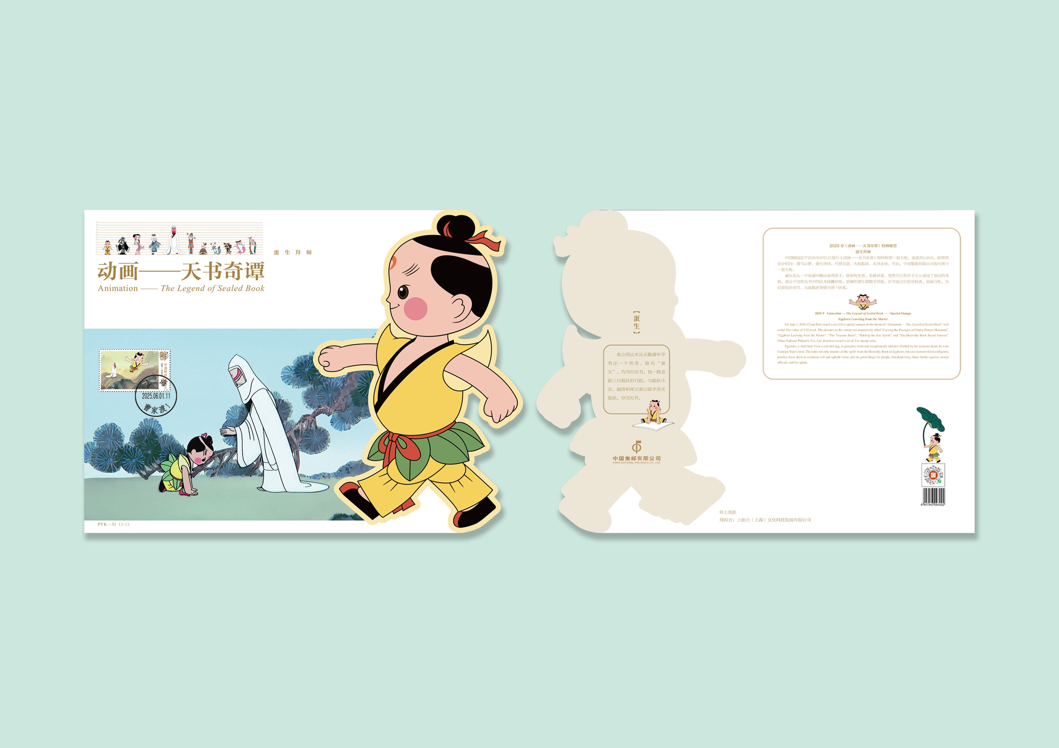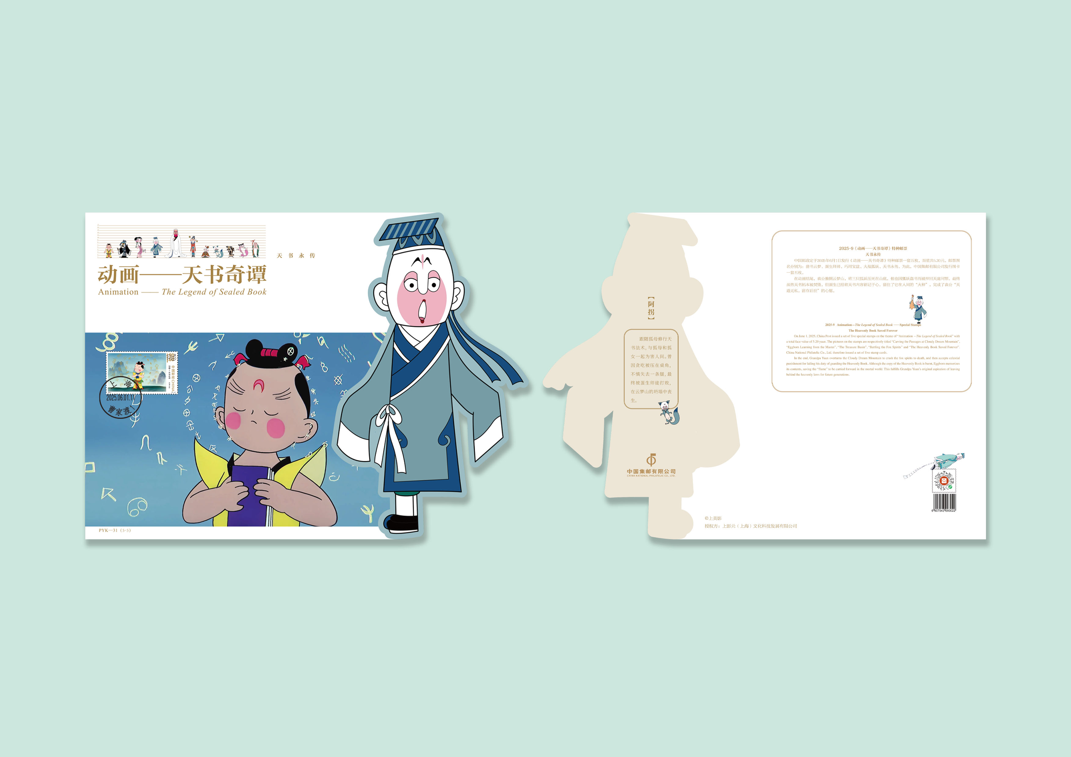 《天书奇谭》是根据《平妖传》部分章节改编,由上海美术电影制片厂出品,于 1983年上映的动画长片。该片讲述了天宫里的袁公为造福人间偷传天书,刻于云梦山白云洞石壁上,后有三只狐妖偷学天书,祸害人间,少年蛋生拜师袁公,刻苦学习天书法术,最终师徒联手战胜狐妖的故事。 本套邮票以《天书奇谭》主要人物蛋生为主线,通过五组场景展现故事精髓,运用荧光工艺强化视觉叙事。 中国邮政拟定于2025年6月1日发行《动画——天书奇谭》特种邮票1套5枚,图案名称分别为凿书云梦、蛋生拜师、巧用宝盆、大战狐妖、天书永传。中国集邮有限公司于2025年6月1日发行《动画——天书奇谭》图卡一套5枚,贴《动画——天书奇谭》特种邮票套票,销原地戳。