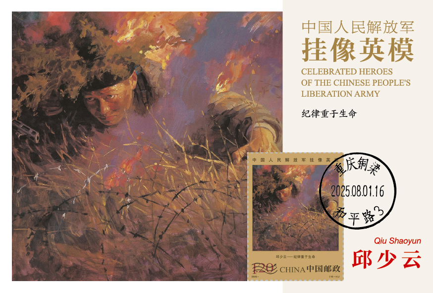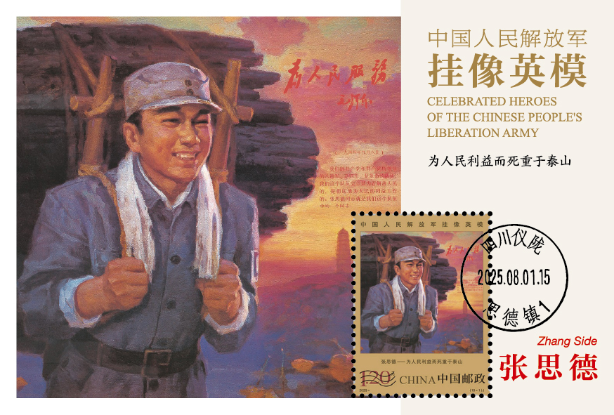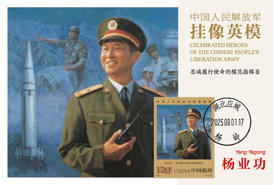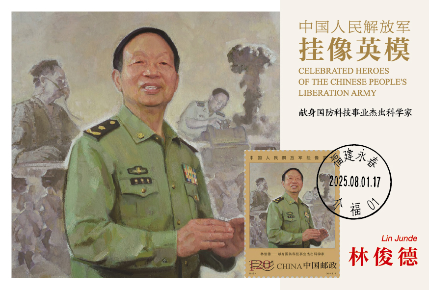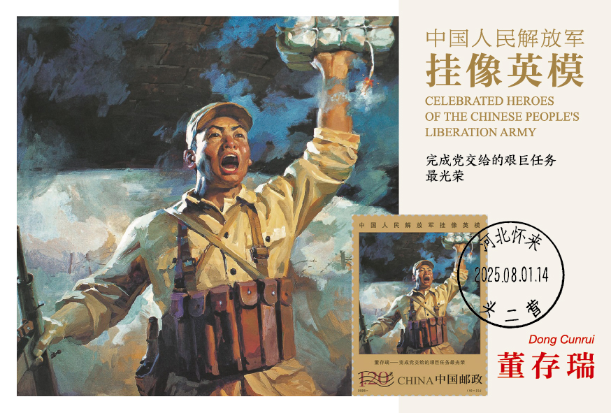 中国集邮有限公司于2025年8月1日发行《中国人民解放军挂像英模》极限明信片,编号MC-143,一套十枚,贴套票、销原地戳。
